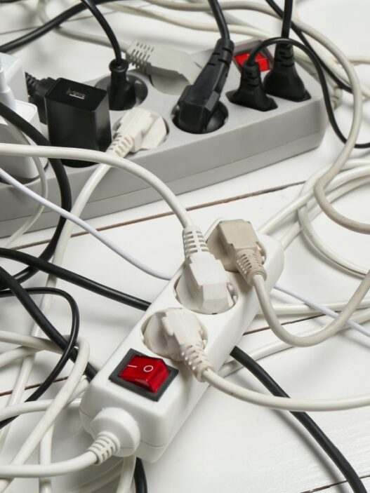 - kodowanie kolorami (np. niebieski – 230 V, czerwony – 400 V),